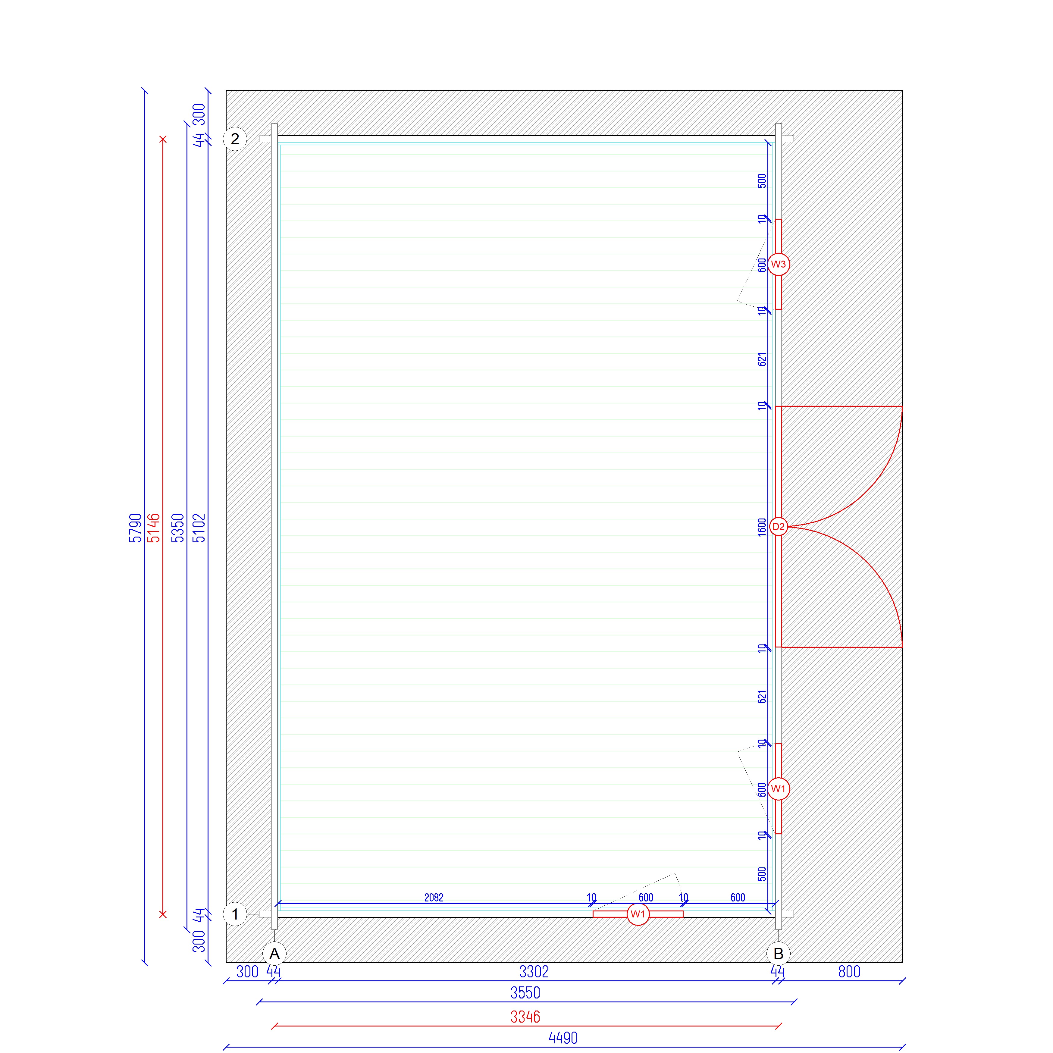 Bohlenstärke | 44 mm mit doppelter Nut+Feder |