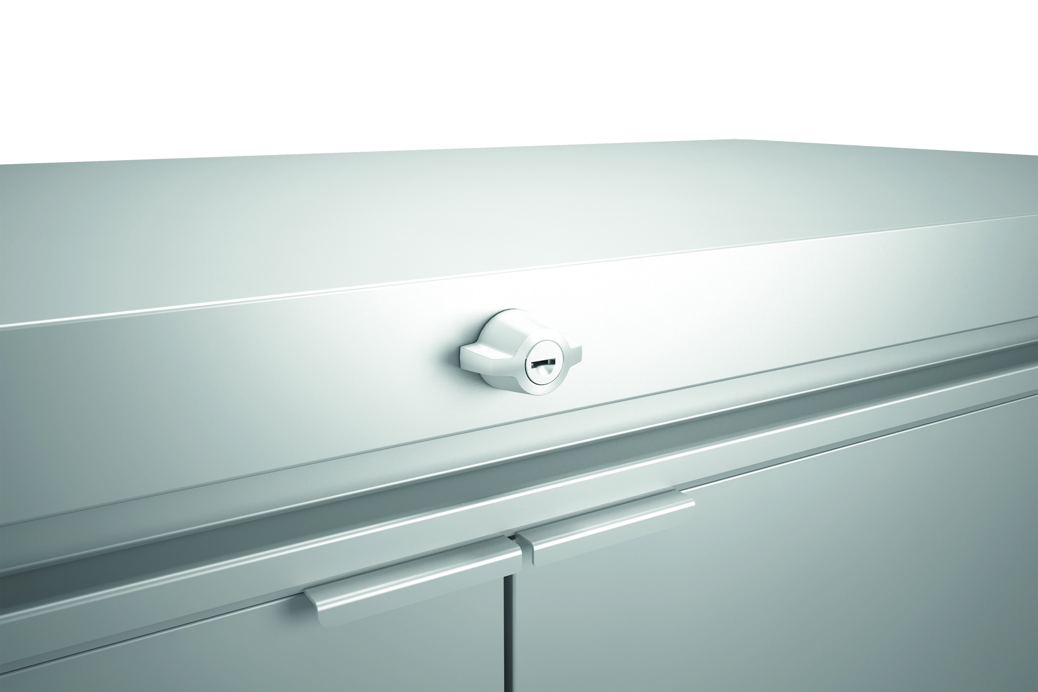 Grundausstattung | Deckel- und Türenenöffnung mit Gasdruckfeder, Verriegelung mit Drehknebel-Zylinderschloß |