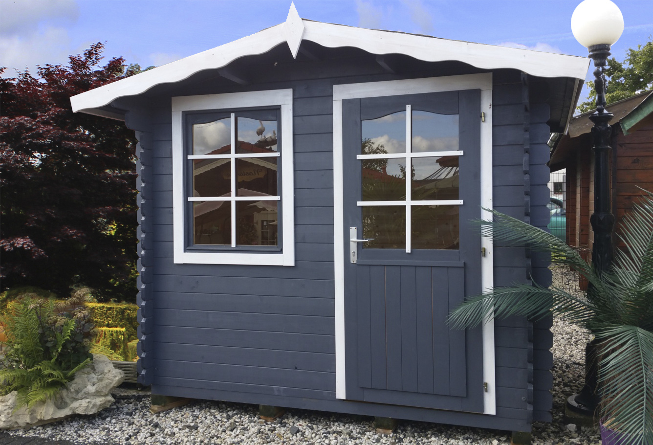 Auf Wunsch mit Fundamentierung, Montage, Dachdeckerarbeiten, Anstreichservice.