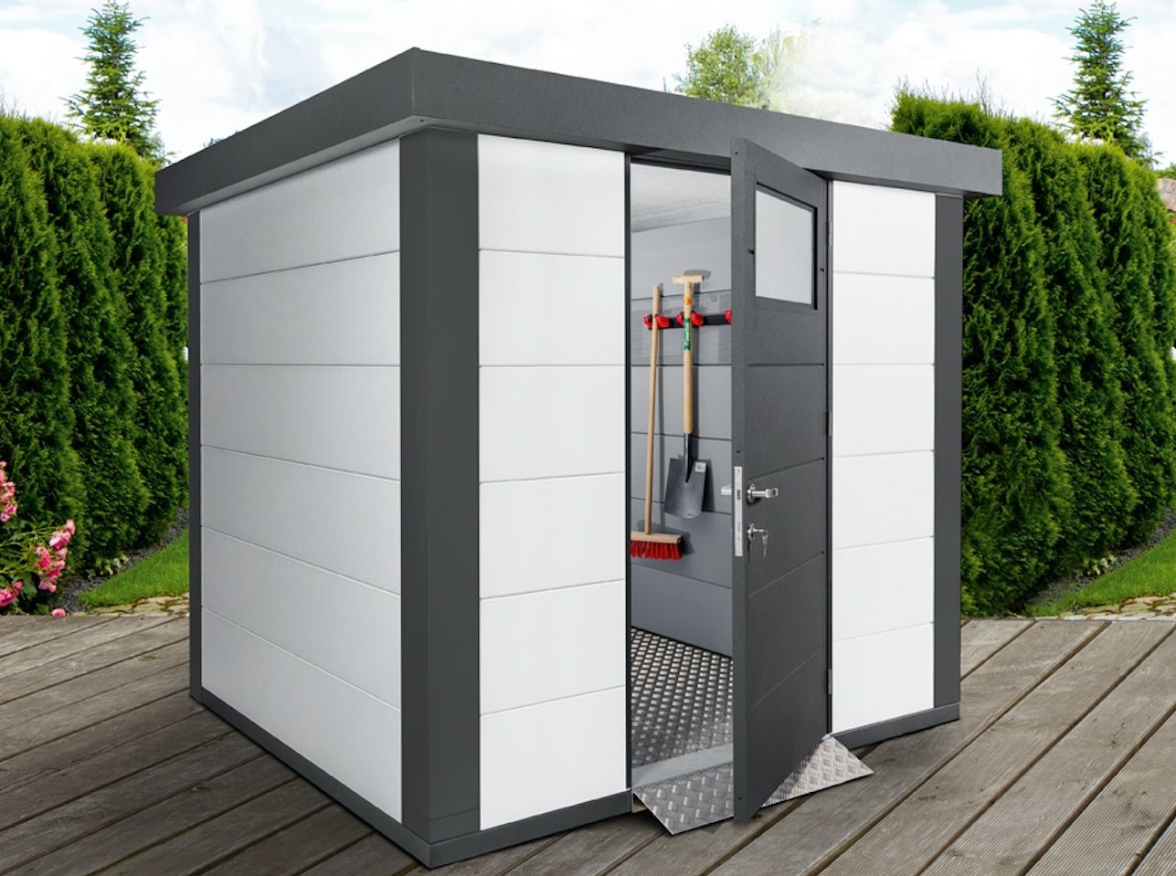 Bei der Metall-Gartenhausserie "Metallica" werden höchste Ansprüche an Design, Wertigkeit und Komfort verwirklicht. Klare Linien und eine herausragende Oberflächenbeschichtung bewirken den modernen Charakter der Metallgartenhäuser. Unterschiedliche Möglichkeiten, den Innenraum der Metallica-Metallhäuser zu gestalten, geben Spielraum bei der Nutzung. Die beachtliche Türhöhe von 198 cm bei allen Modellen ermöglicht einen unkomplizierten Umgang auch mit sperrigen Gegenständen.
