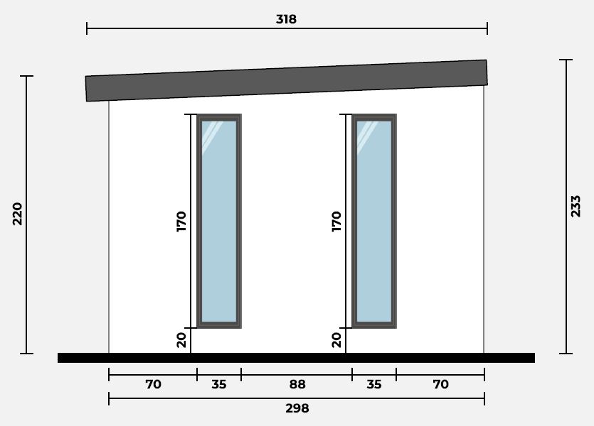- Fenster und Türen können auf Wunsch frei positioniert werden