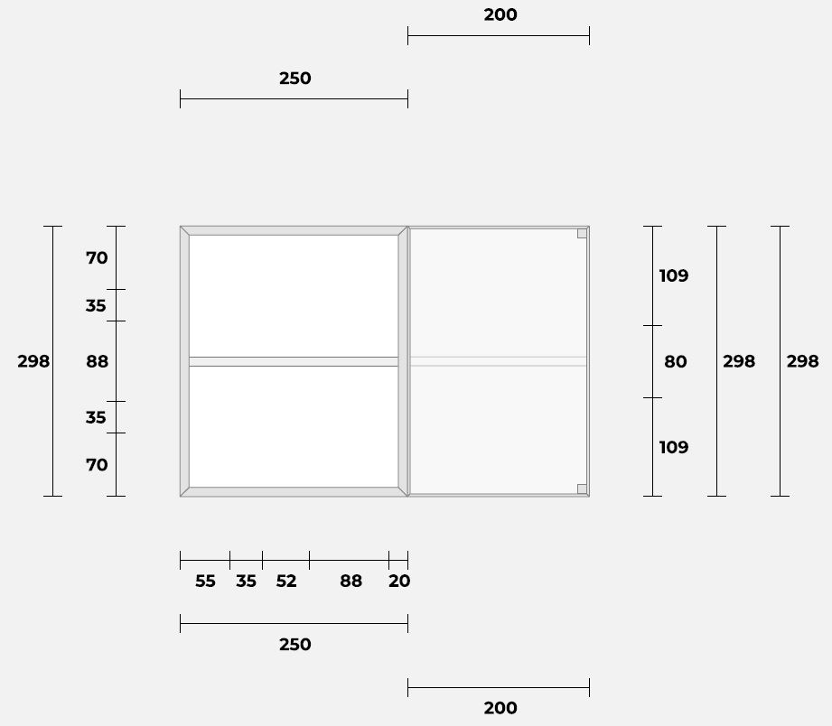 Fenster links | 2 feststehende Designfenster ca. 35 x 170 cm, doppelverglast mit Echtglas, Rahmen anthrazit |