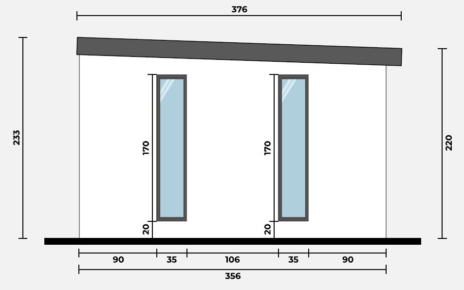 Seitendach | ca. 200 x 356 cm, schwarz |
