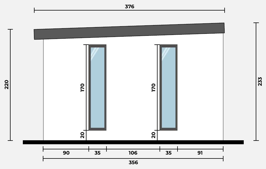 - Fenster und Türen können auf Wunsch frei positioniert werden