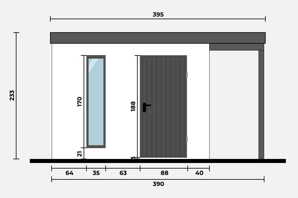 - Fenster und Türen können auf Wunsch frei positioniert werden