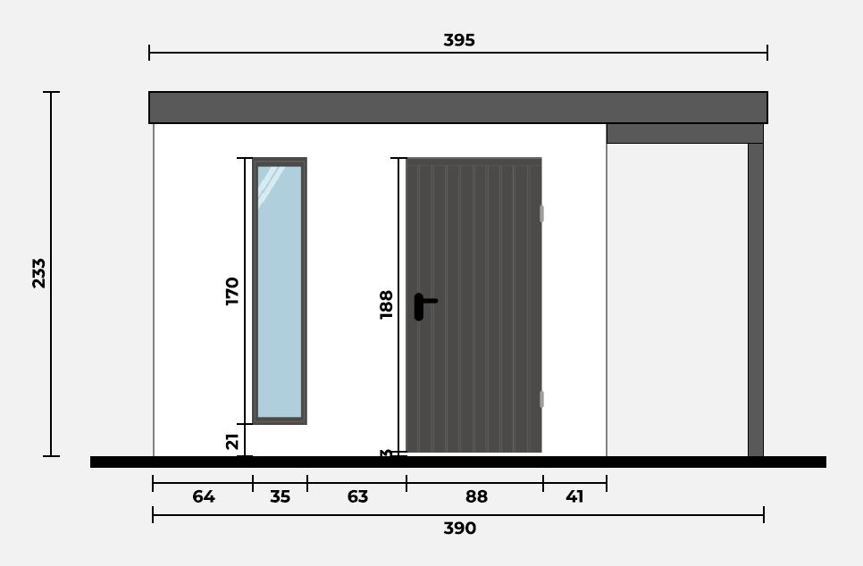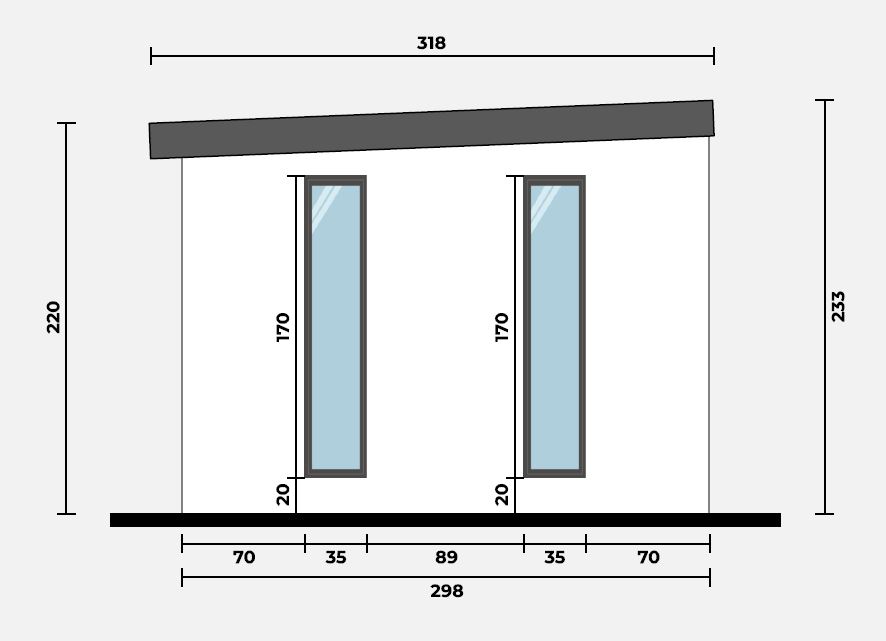 - Fenster und Türen können auf Wunsch frei positioniert werden