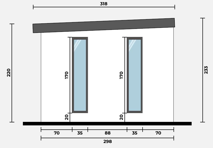 - Fenster und Türen können auf Wunsch frei positioniert werden