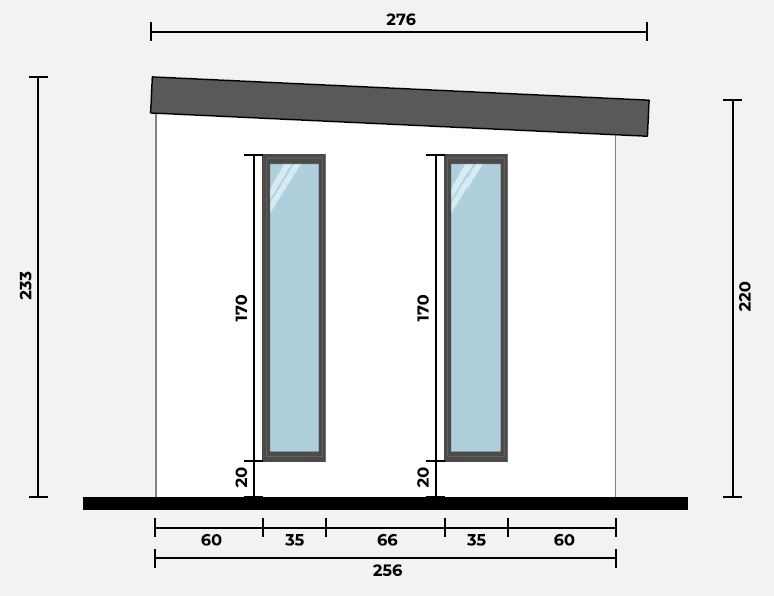 Fenster rechts | 2 feststehende Designfenster ca. 35 x 170 cm, doppelverglast mit Echtglas, Rahmen anthrazit |