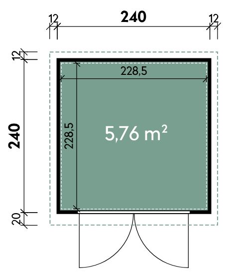 Dach | innen mit Anti-Tropf-Vlies, Dachkranz inkl. Entwässerung, Dachneigung 1°, Dachüberstand vorne 20 cm, links, rechts und hinten je 12 cm |