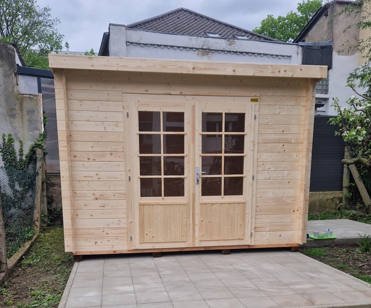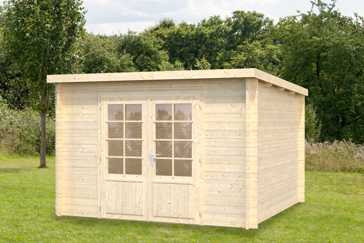 Bohlenstärke | 28 mm Blockbohlen mit Nut+Feder, mit traditioneller Eckverkämmung |