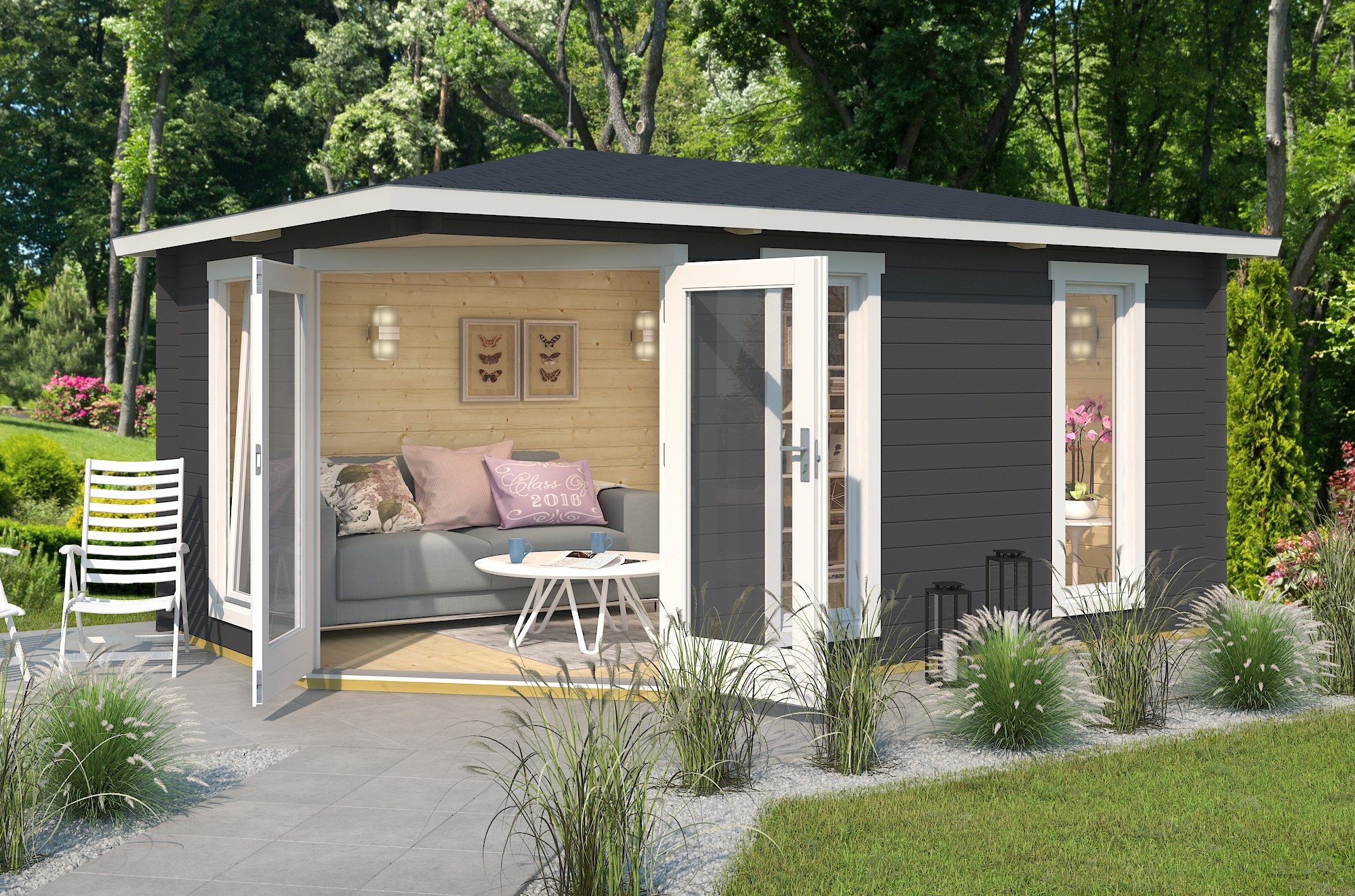 3-seitig farbbehandelt ab Werk (innen naturbelassen, Fenster-/Türrahmen cremeweiß) | 7.902,- € |