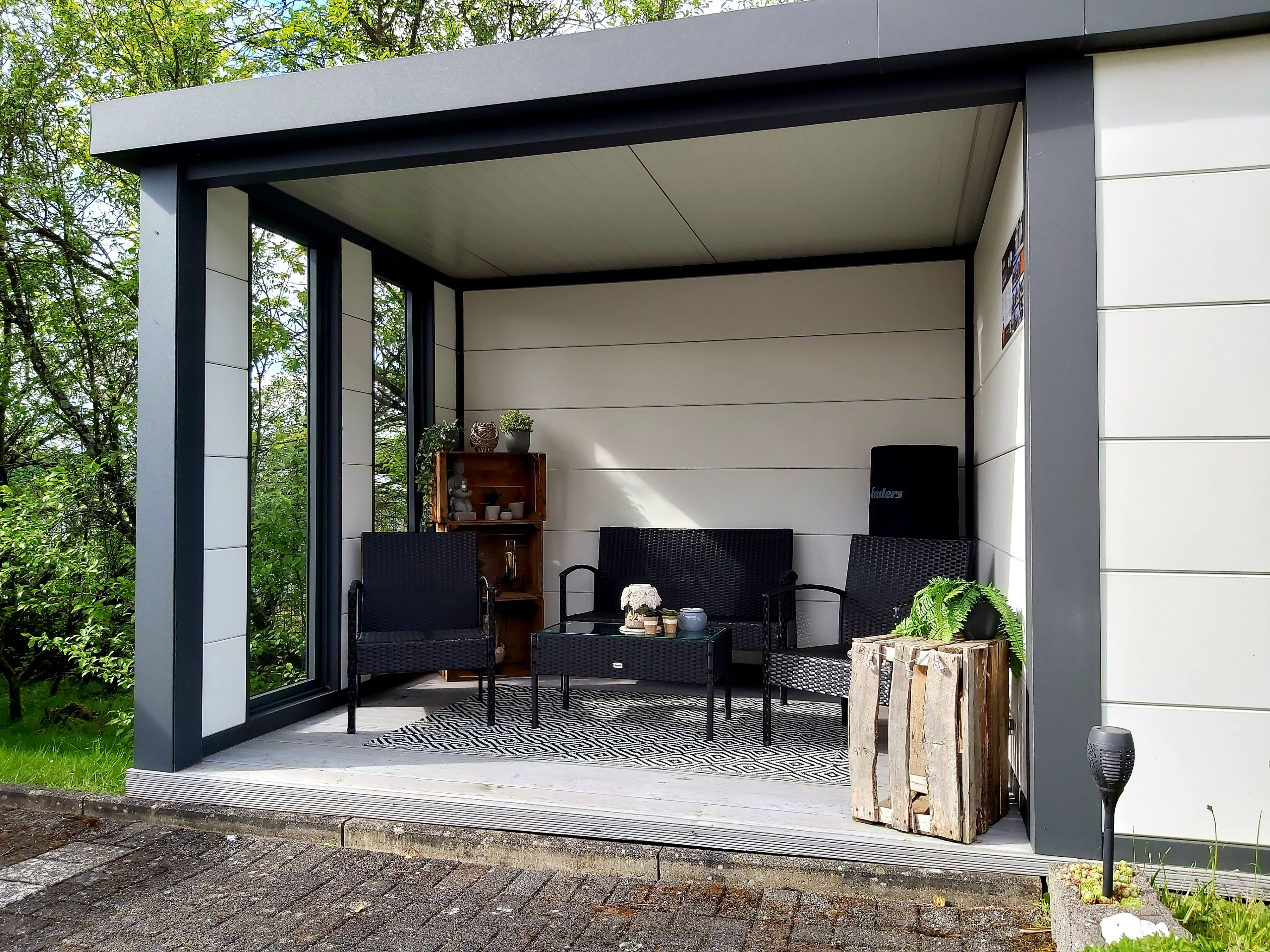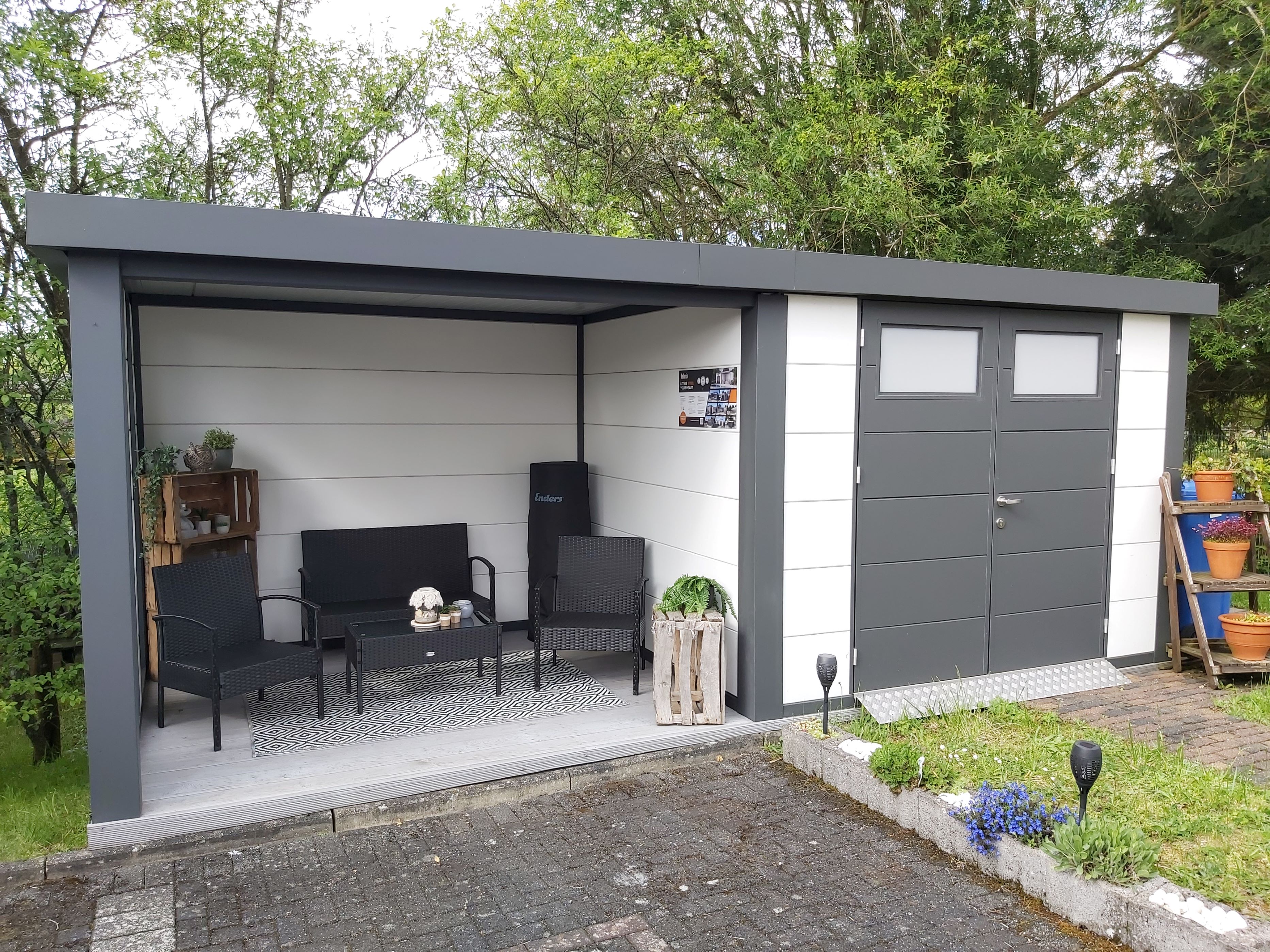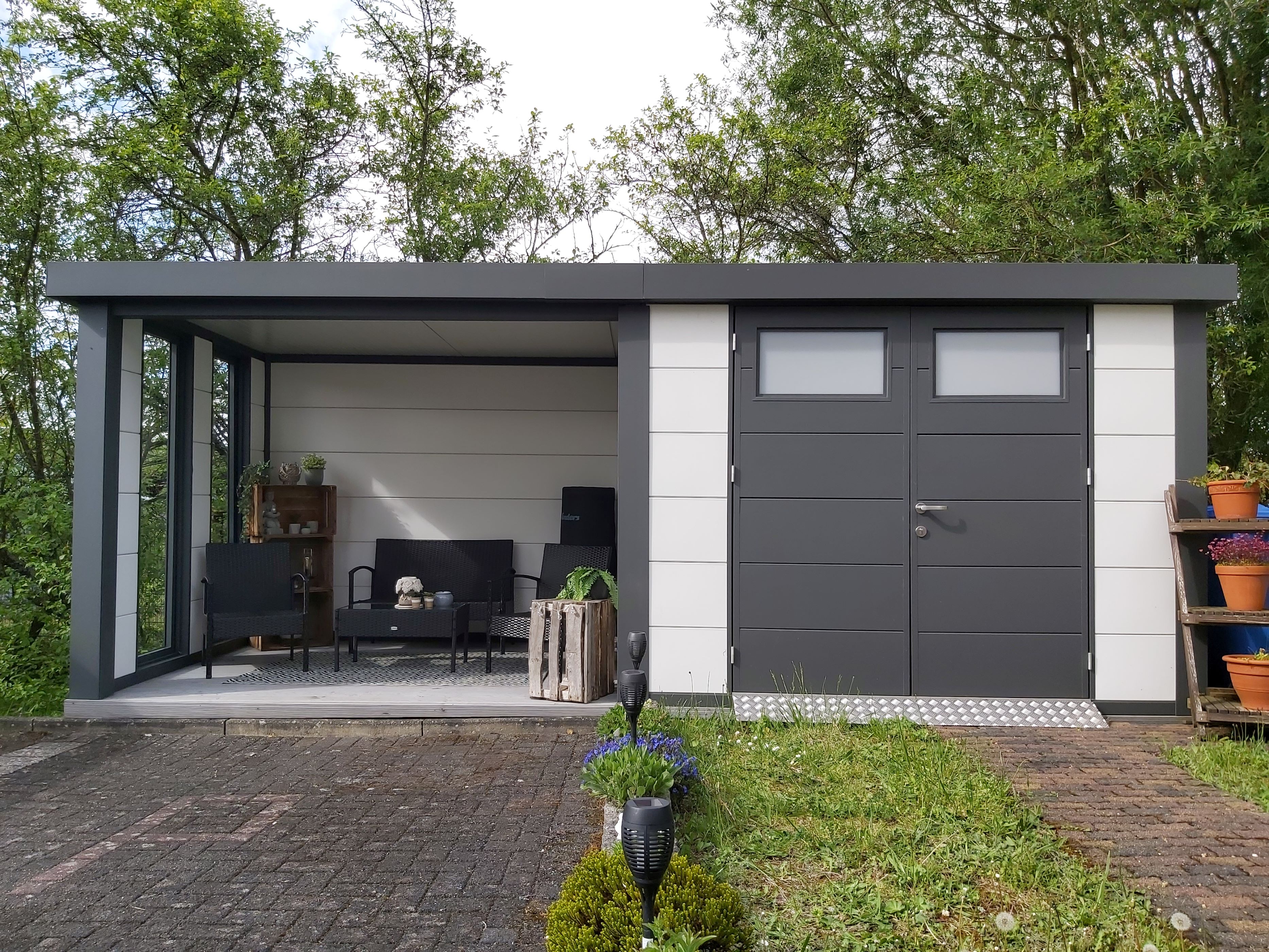 - integrierte Dachisolierung und Dachrinne mit Fallrohr und 2 Lüftungsgittern