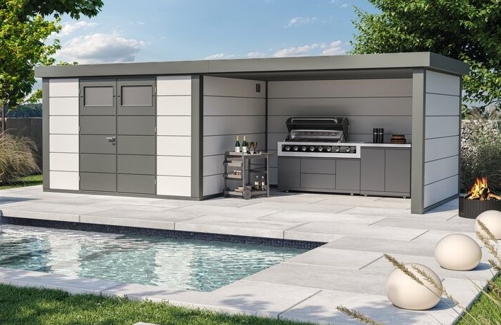 Bei der Metall-Gartenhausserie "Metallica" werden höchste Ansprüche an Design, Wertigkeit und Komfort verwirklicht. Klare Linien und eine herausragende Oberflächenbeschichtung bewirken den modernen Charakter der Metallgartenhäuser. Unterschiedliche Möglichkeiten, den Innenraum der Metallica-Metallhäuser zu gestalten, geben Spielraum bei der Nutzung. Die beachtliche Türhöhe von 198 cm bei allen Modellen ermöglicht einen unkomplizierten Umgang auch mit sperrigen Gegenständen.