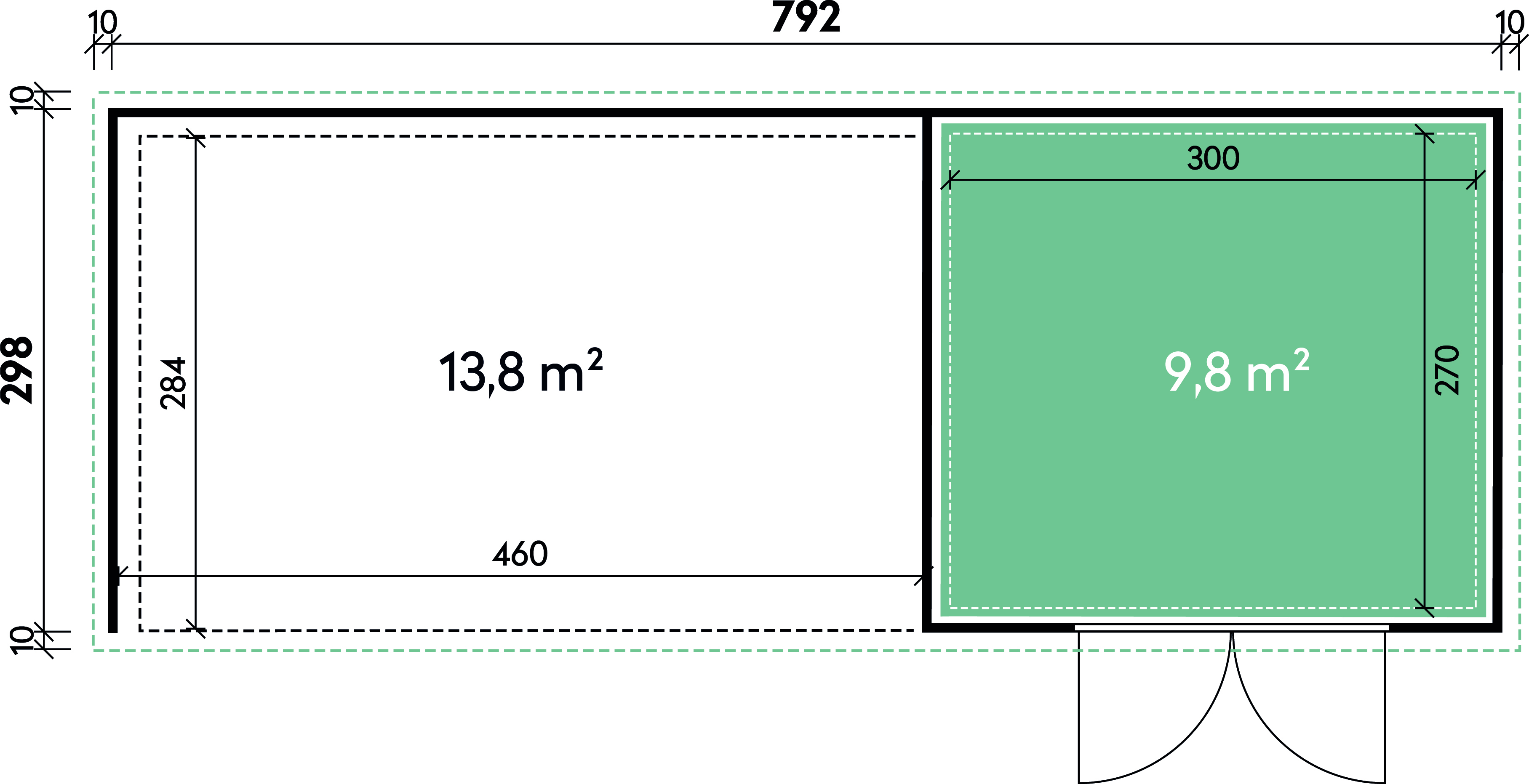 - integrierte Dachisolierung und Dachrinne mit Fallrohr und 2 Lüftungsgittern