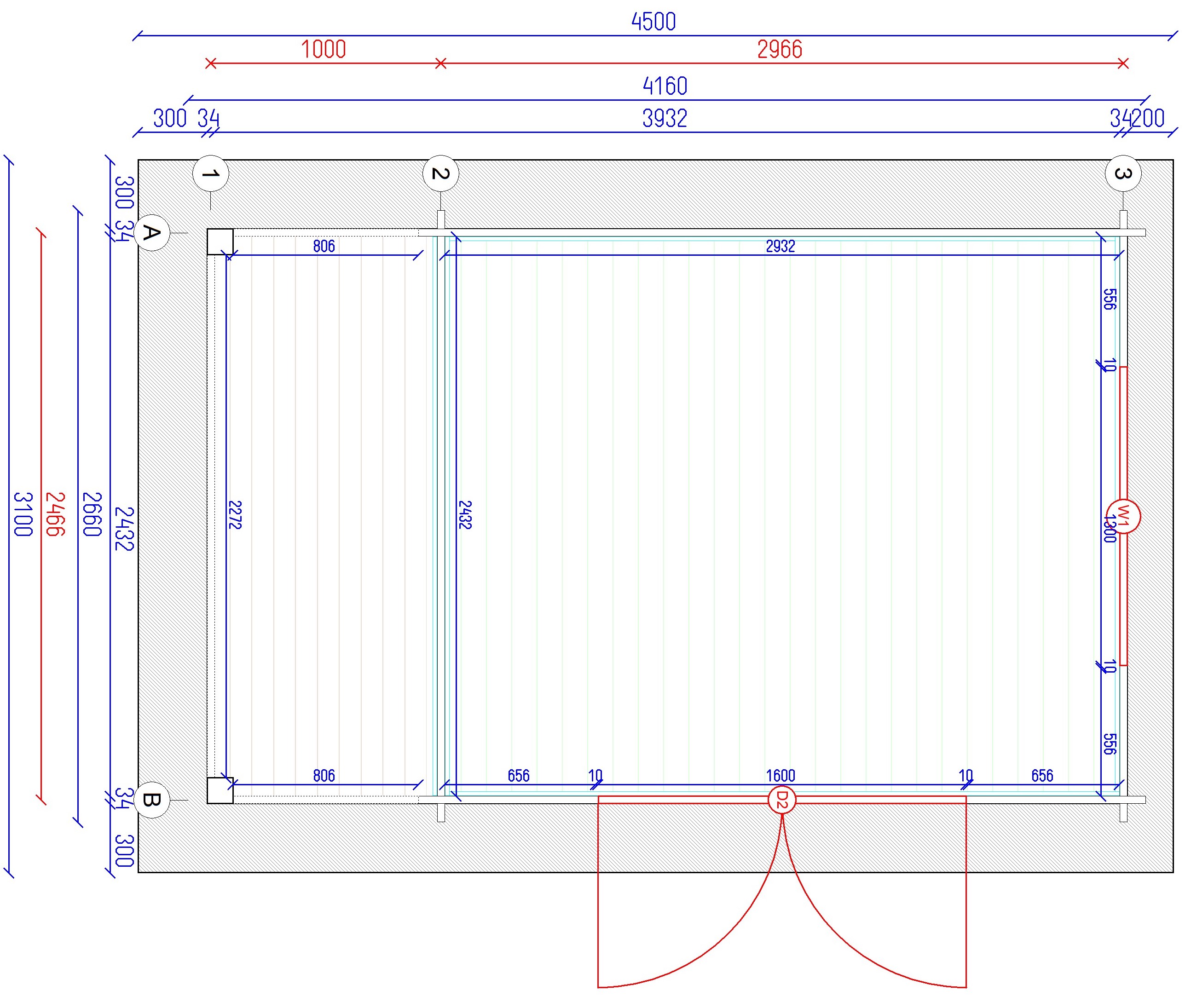 Seitendach | 100 cm, inkl. 2 Stützpfosten, wahlweise links oder rechts |