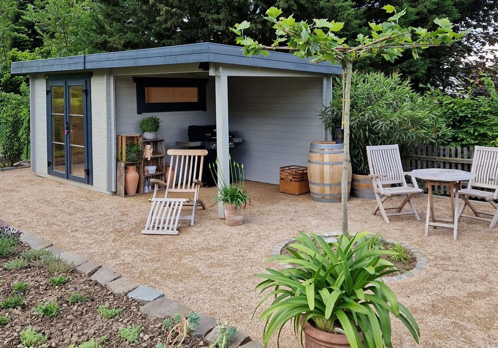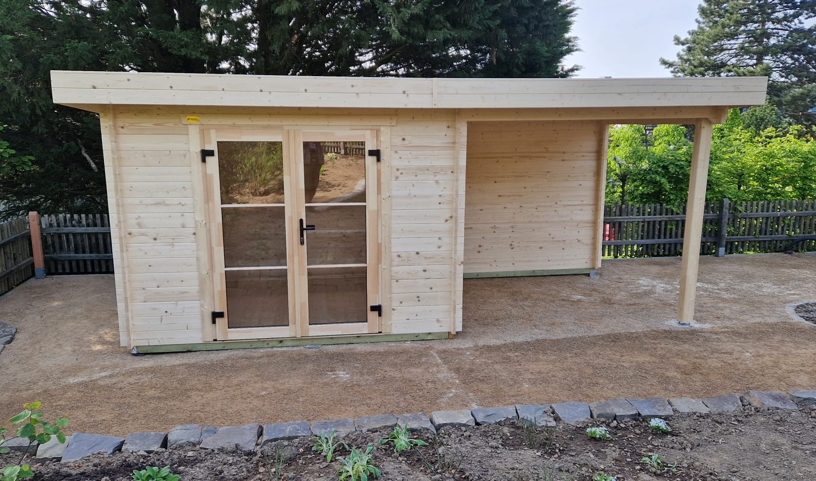 Seitendach | ca. 252 x 250 cm, mit geschlossener Rückwand und Terrassenboden |