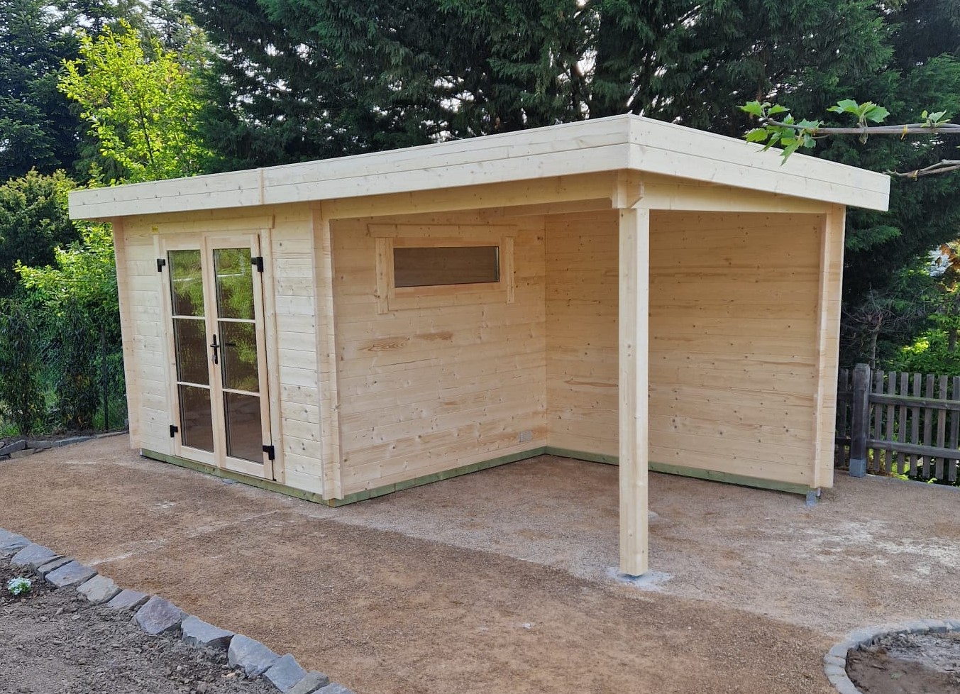 Bohlenstärke | 34 mm mit Nut+Feder, neues Modell mit traditionellen Blockecken |
