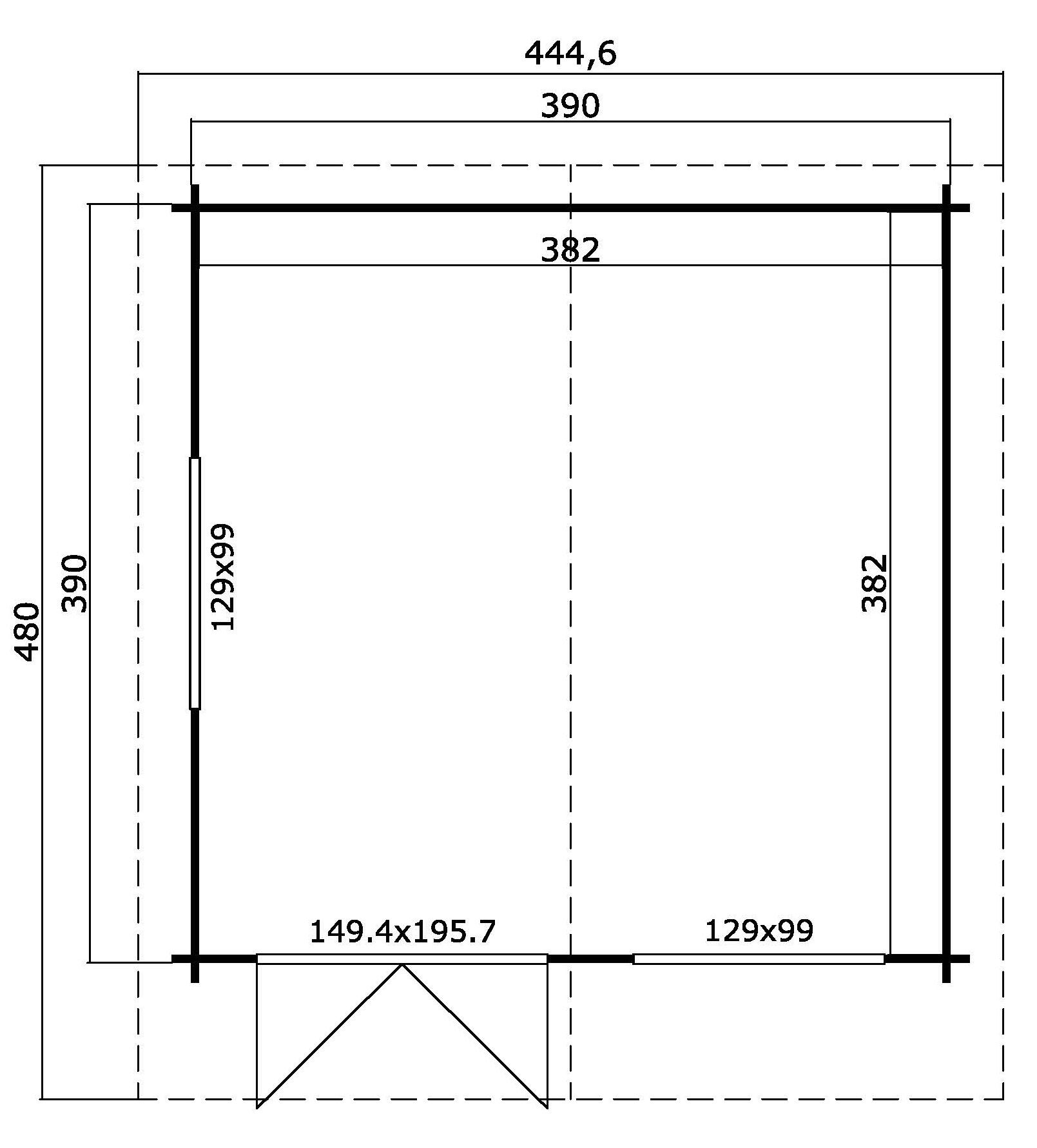 3-seitige Farbbehandlung | Innenseite, Dachpfetten und -bretter naturbelassen; mögliche Farben: schwedenrot, grüngrau, carbongrau und lichtgrau; Türenenen und Fenster in cremeweiß |