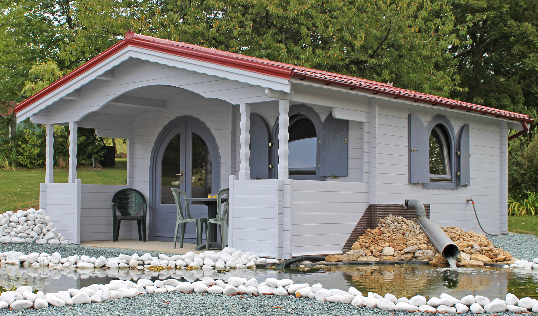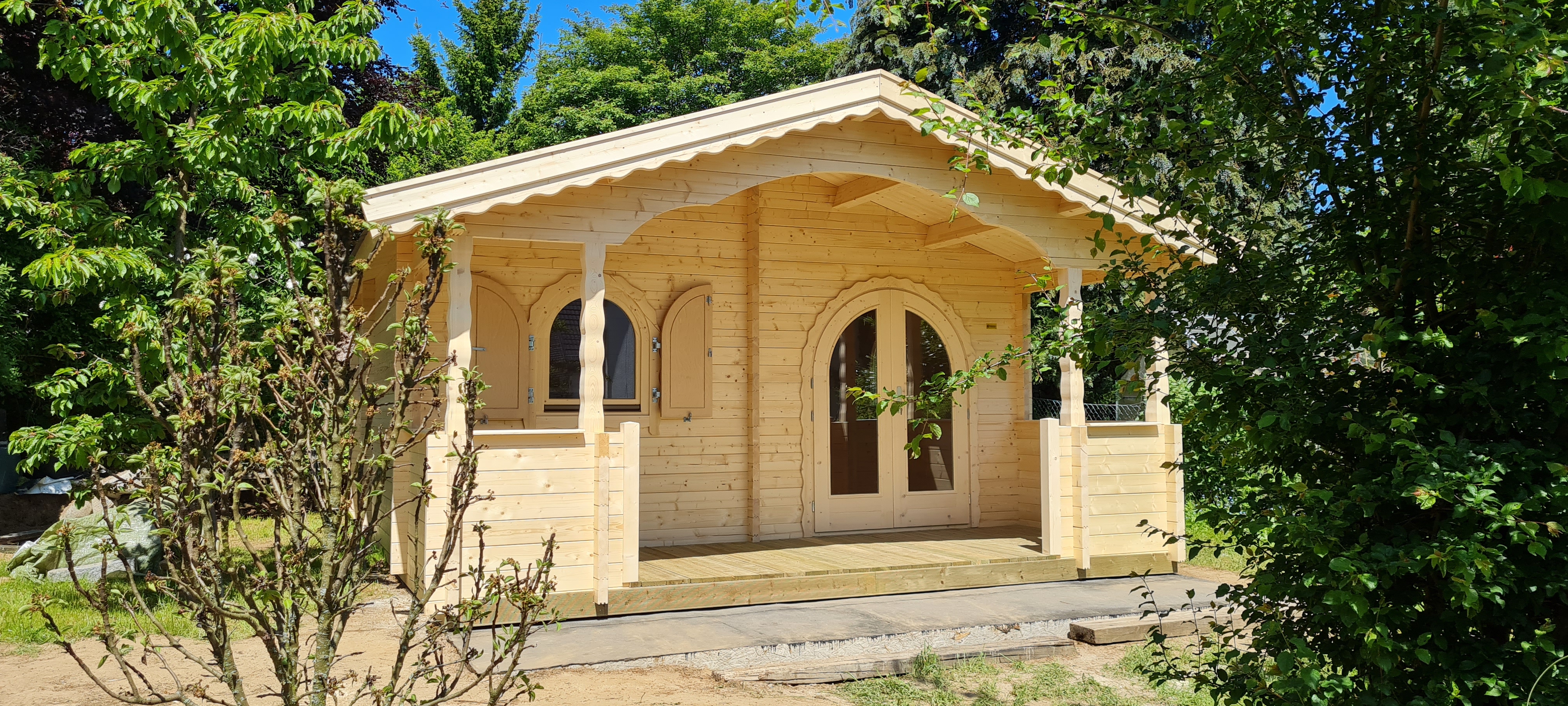 Dach | 20 mm Dachbretter auf Dachsparren, Vordach auf verzierten Stützpfosten |