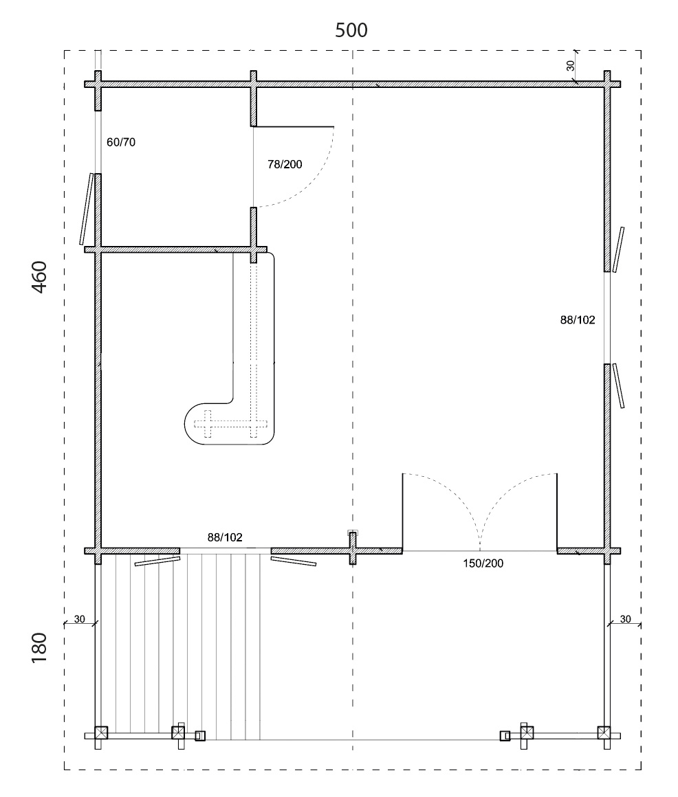 Bohlenstärke | 58 mm mit doppelter Nut+Feder |