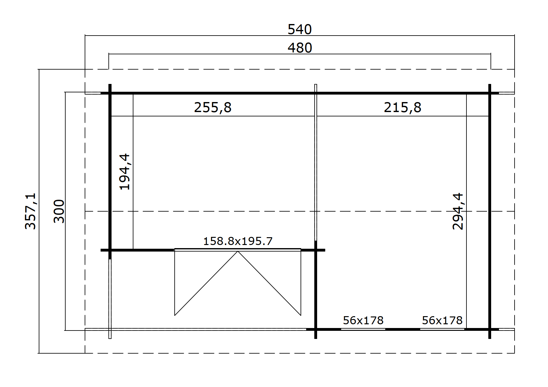 3-seitige Farbbehandlung | Innenseite, Dachpfetten und -bretter naturbelassen; mögliche Farben: schwedenrot, grüngrau, carbongrau und lichtgrau; Türenenen und Fenster in cremeweiß |