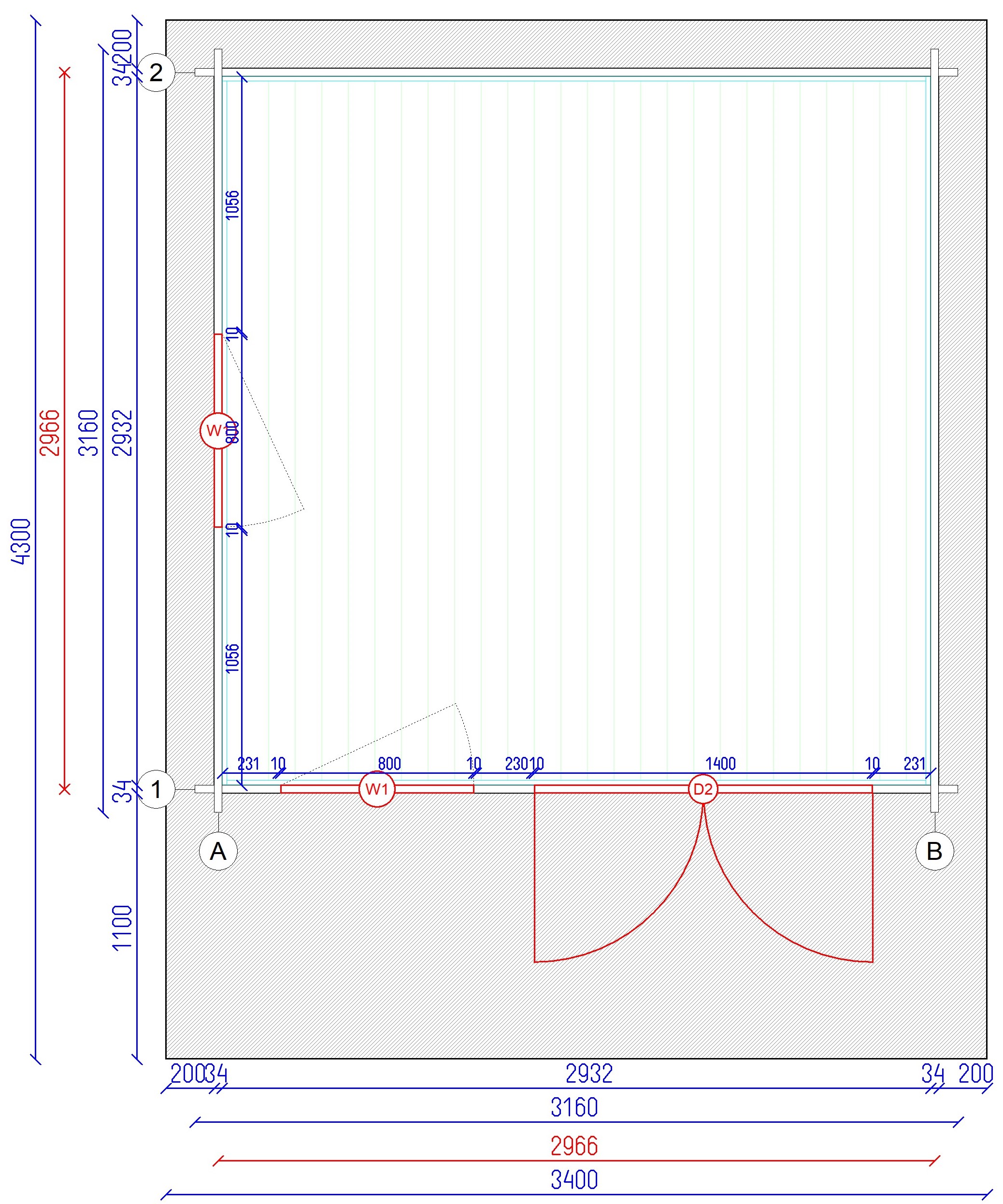 Bohlenstärke | 34 mm Blockbohlen mit Nut+Feder |