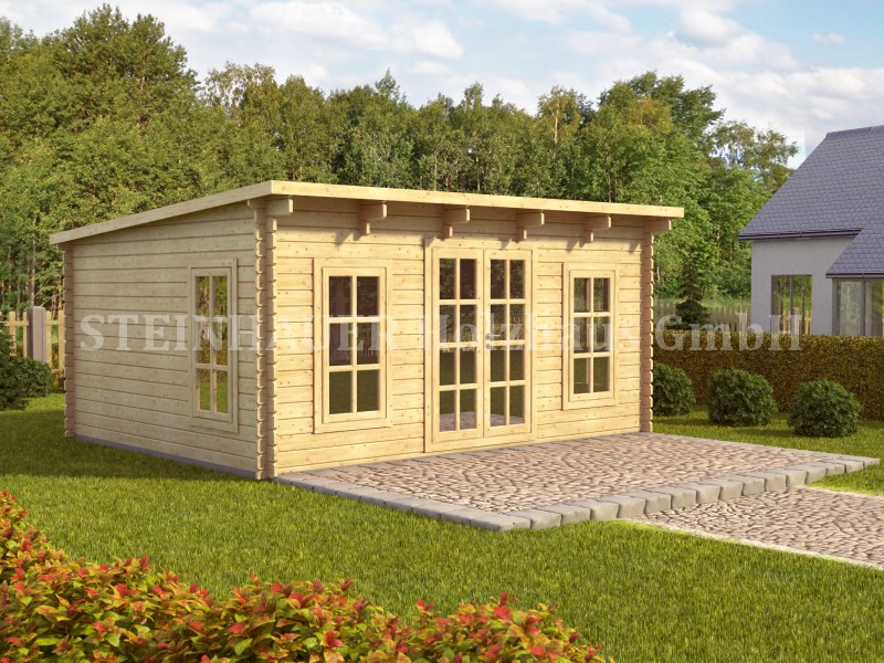 Bohlenstärke | 34 mm oder 44 mm Blockbohlen mit Nut+Feder, mit traditionellen Blockecken |