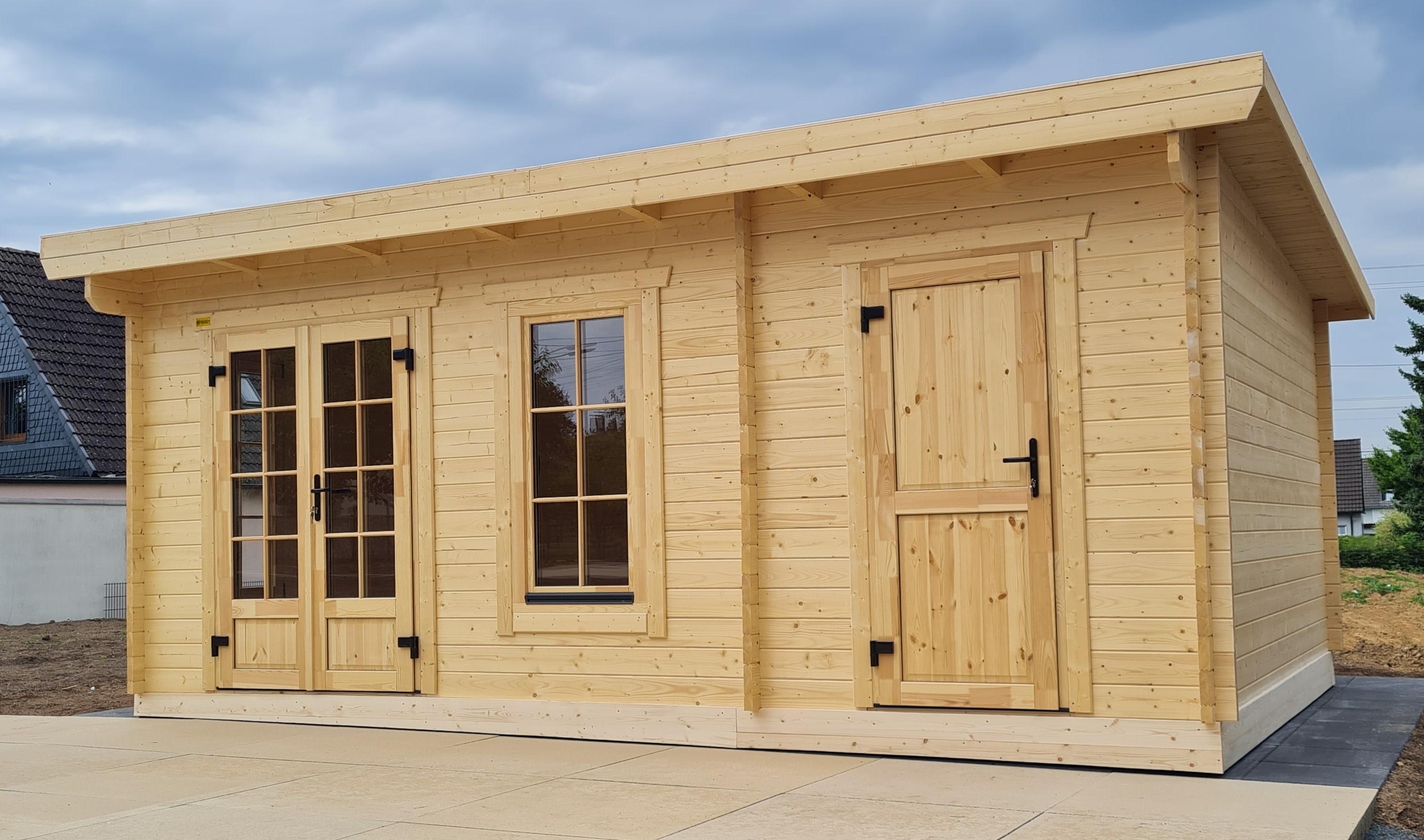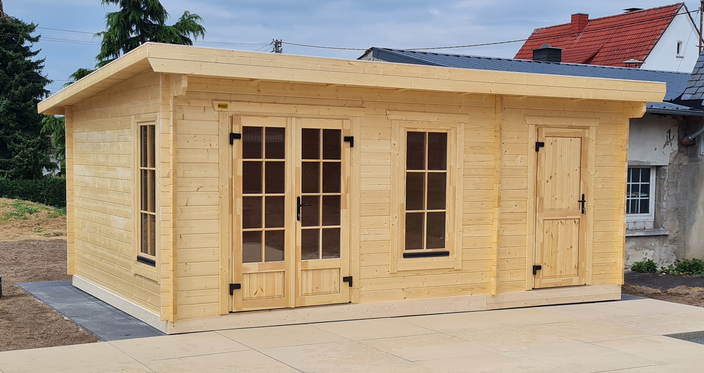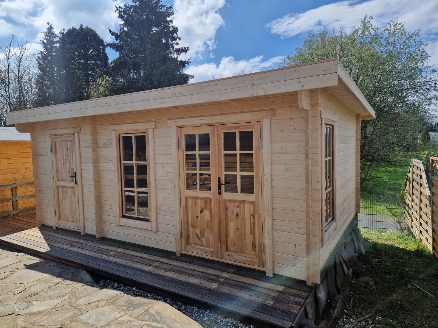Bohlenstärke | 44 mm Blockbohlen mit Nut+Feder, mit traditionellen Blockecken |