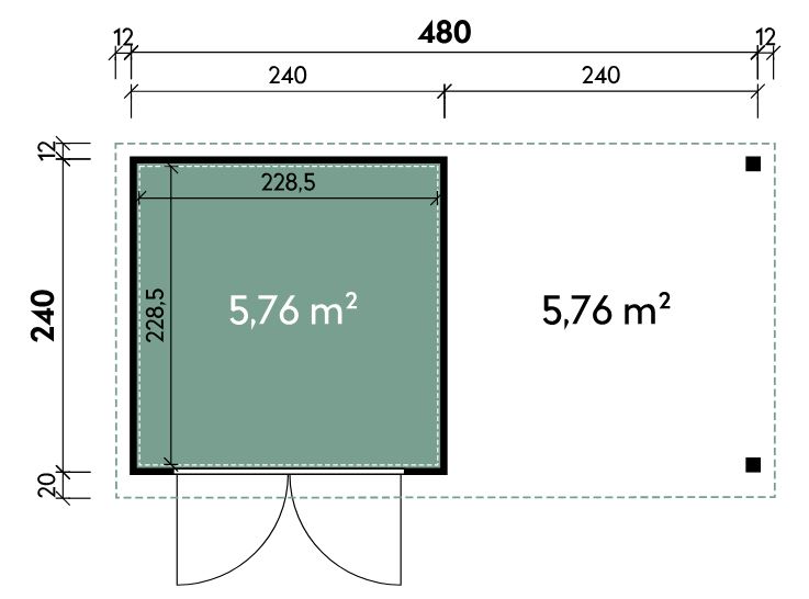 Dach | innen mit Anti-Tropf-Vlies, Dachkranz inkl. Entwässerung, Dachneigung 1°, Dachüberstand vorne 20 cm, links, rechts und hinten je 12 cm |