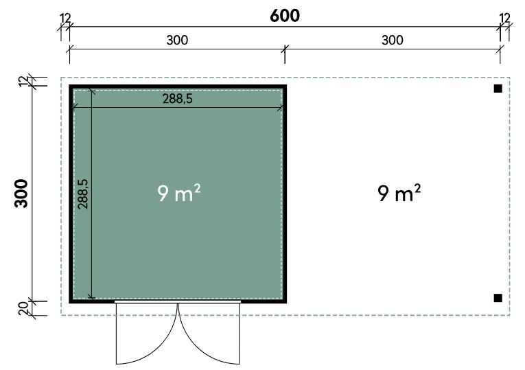 Dach | innen mit Anti-Tropf-Vlies, Dachkranz inkl. Entwässerung, Dachneigung 1°, Dachüberstand vorne 20 cm, links, rechts und hinten je 12 cm |