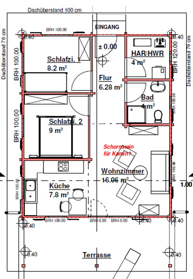 Unser Wohnhaus-Bausatz wird ohne Aufpreis Ihren Wünschen angepasst. Ein Eigenentwurf ist ebenfalls möglich.